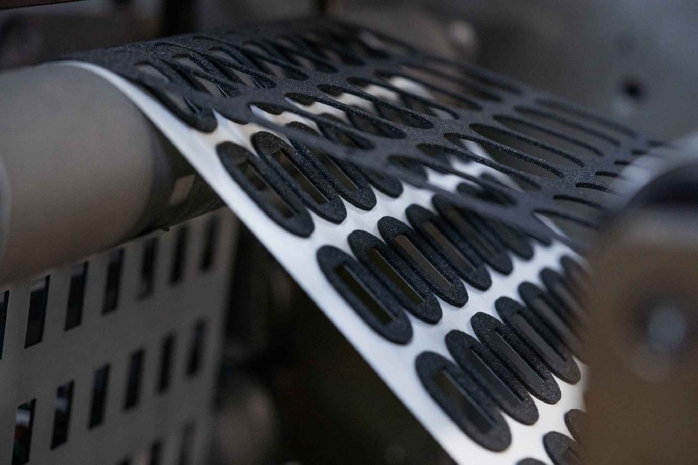 模切過程:膠帶隨傳送帶進入模具下方,通過壓力作用使模具切入膠帶,形成預設形狀(如圓形、異形、多孔結構等)。